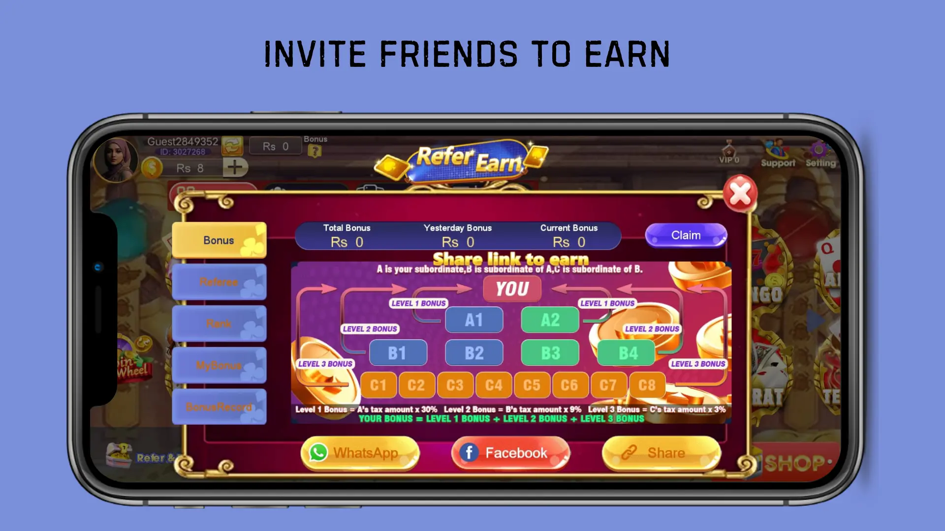 - Invite friends to join 3CardPk and earn a bonus when they sign up and make a deposit.