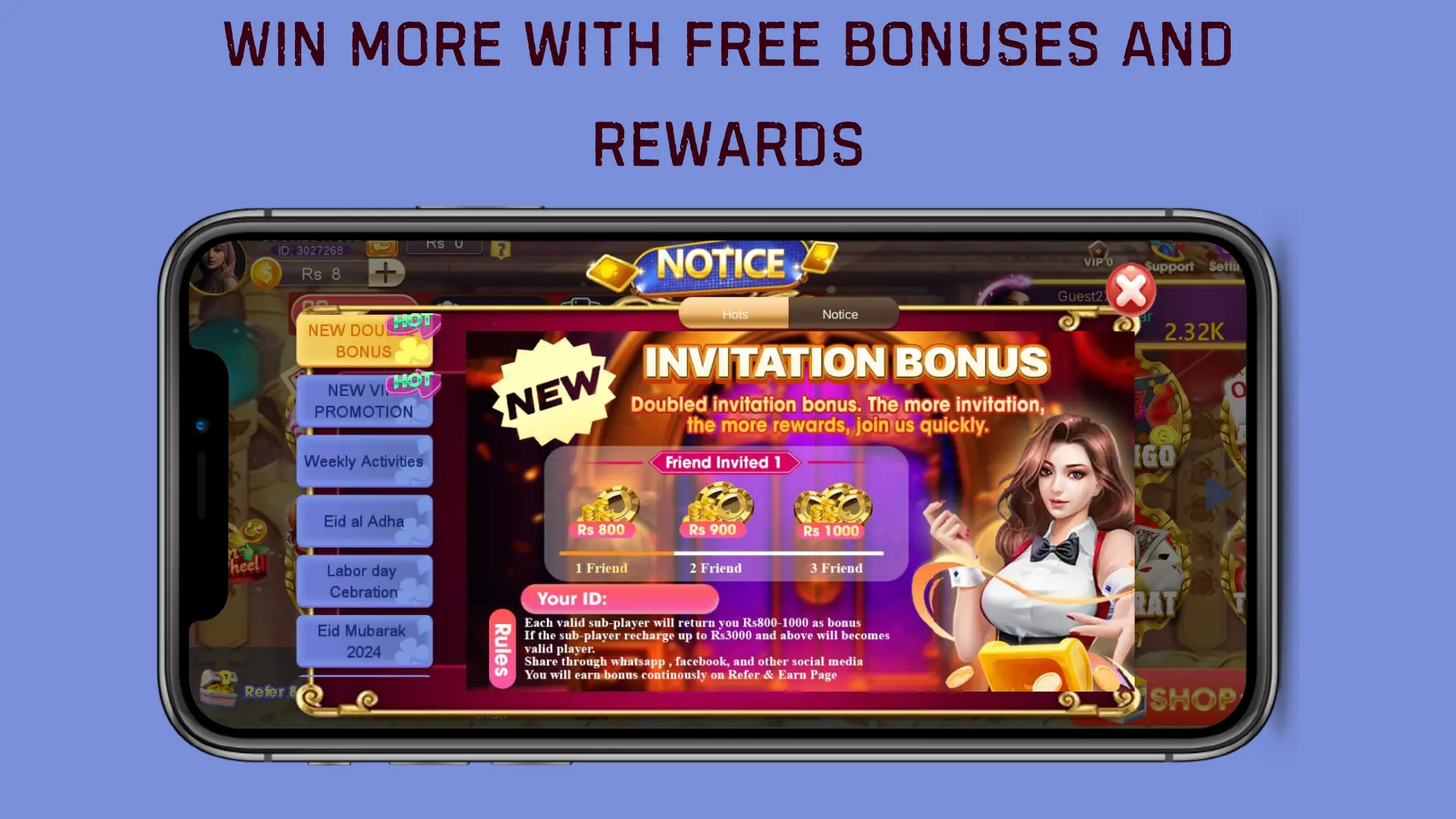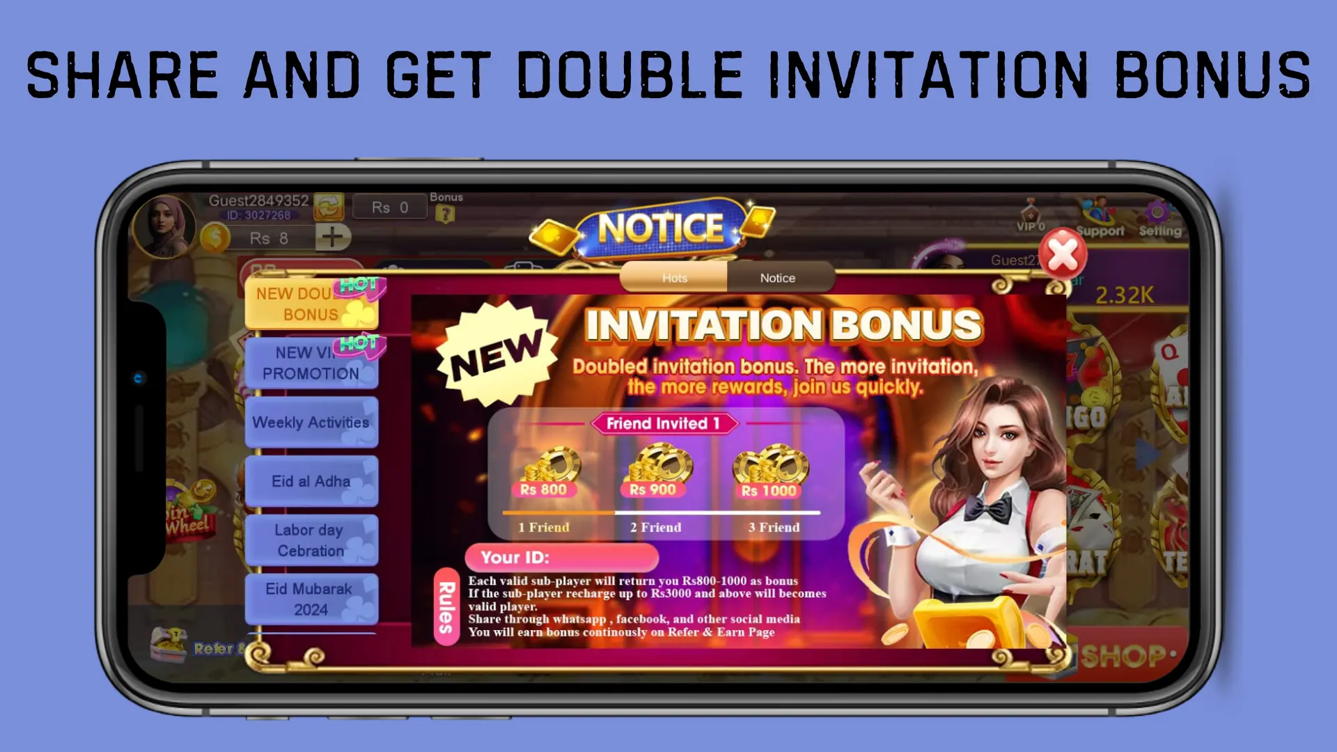 3Card Pk offers various bonuses and rewards to keep players engaged and maximize their earnings. Here’s a breakdown of the key promotions available: