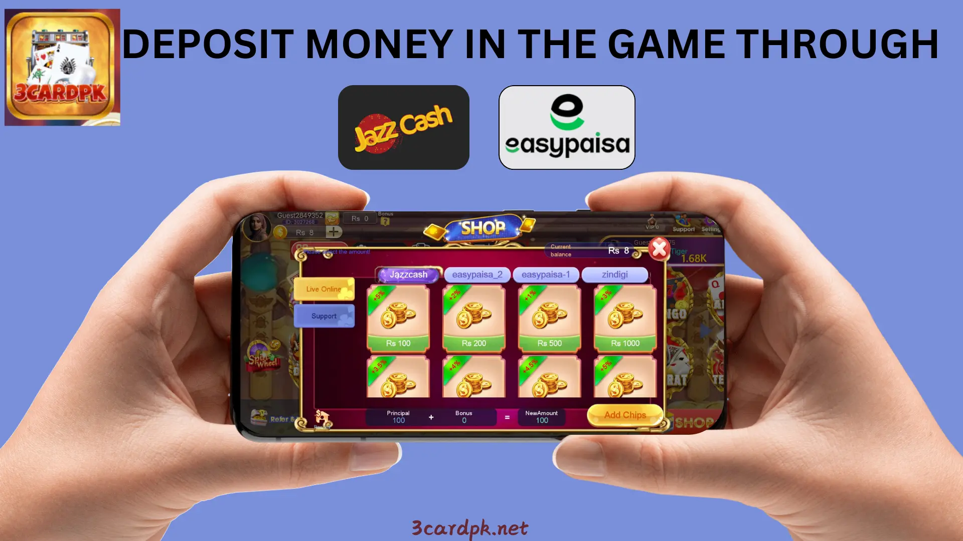 - Funds Will Be Credited Instantly to your 3Card Pk account.